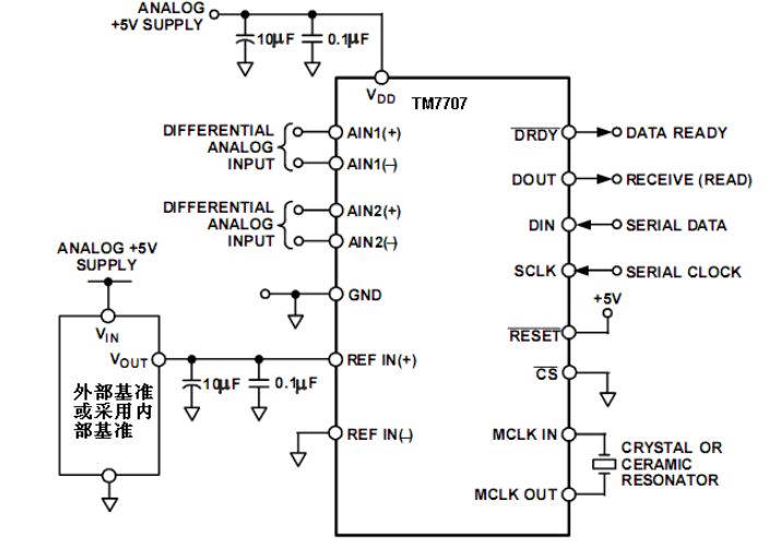 TM7707是应用于低频测量的2/3通道的模拟前端,该器件可以接受直接来自传感器的低电平的输入信号,然后产生串行的数字输出。可实现24位无丢失代码性能,选定的输入信号被送到一个基于模拟调制器的增益可编程前端,片内数字滤波器处理调制器的输出信号,通过片内控制寄存器可调节滤波器截止点和输出更新速率,从而对数字滤波器的第一个陷波进行编程,TM7707是双通道全差分模拟输入,只需2.7-3.3或4.75-5.25的单电源,TM7707是用于智能系统,微控制器和基于DSP系统的理想产品,其串行接口可配置为三线接口。